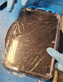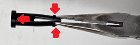 - Because the two pins used to keep the solar lid attached to EPIQ Cable Node base are hard to see fully once they are in place the two pictures below help to illustrate the compression needed with the Needle Nose Pliers in order to slide the two pins out so the lid can be removed.