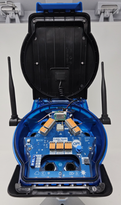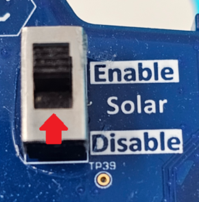 Release the latch and open the lid to expose the solar panel termination. Prior to disconnecting the solar panel flip the solar switch to disable.