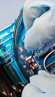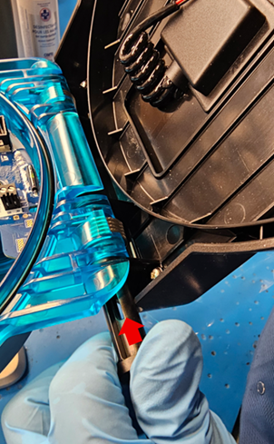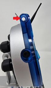 Take the replacement lid and solar panel and align the springs and the hinge. For best exposure ensure the Node is at a 90º angle with the hinge side exposed. This will provide the best visibility and access to align the openings on the lid and the base to push the hinge pins through to attach the lid.
