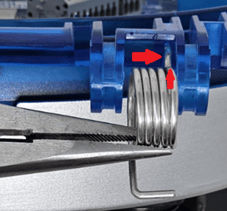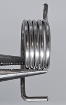 If the spring has come out and needs to be put back in place. Seat the straight pointed end of the spring into the notch on the base as shown below.