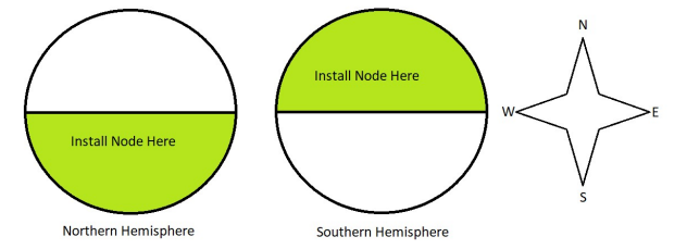 The best practice is to match the angle of the Primary or Secondary Node to the Latitude of your location. Additionally, if you are in the northern United States or Canada, you can add 10 degrees to the angle to increase efficiency during the winter months and improve snow runoff. For example, if I am installing a Primary Node in Calgary, Alberta, Canada, the Latitude is approximately 50 degrees. Since I am adding 10 degrees here, I would install the node with an angle of 60 degrees.